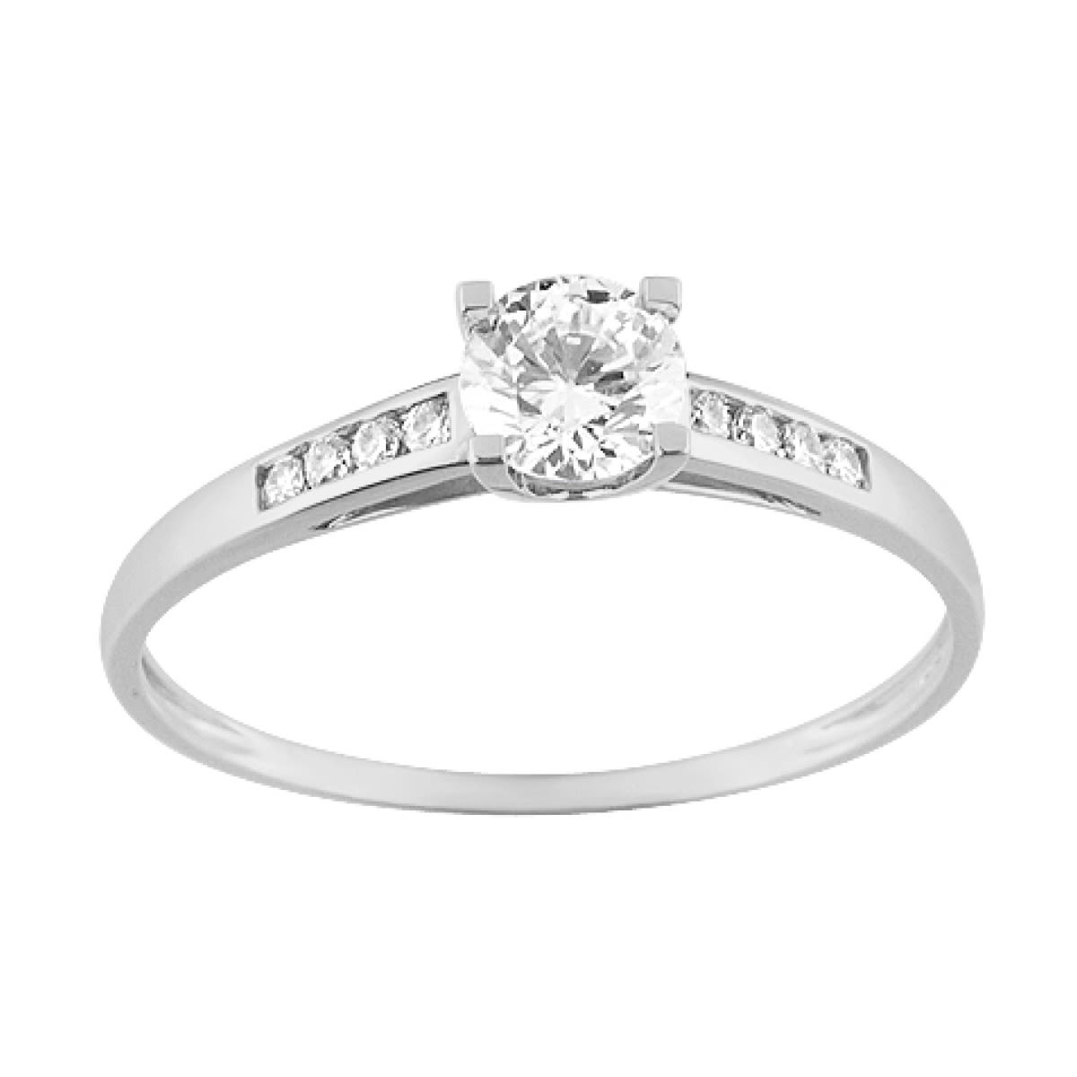 Bague solitaire accompagné quatre griffes, Oxyde de zirconium en or gris 375/1000ème
