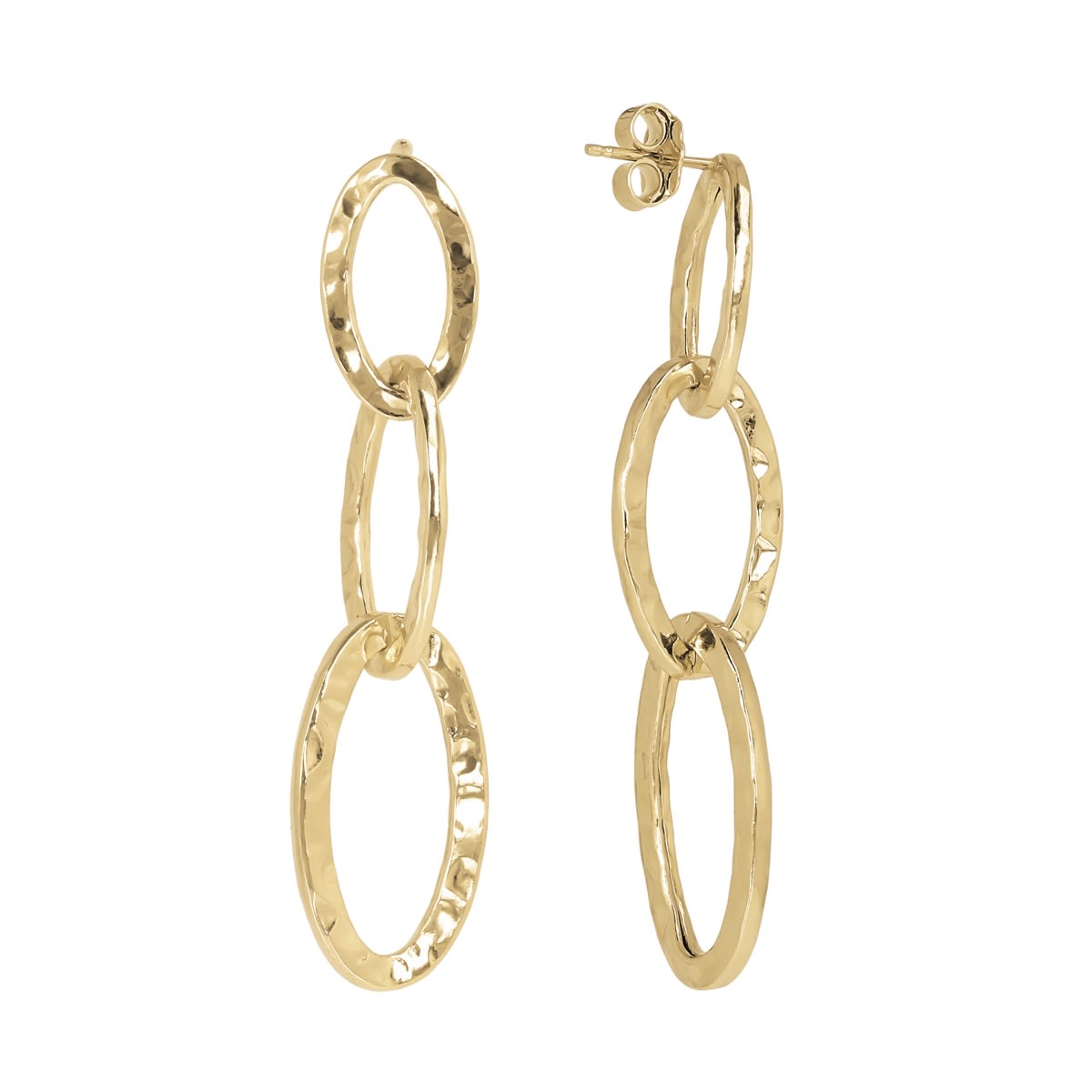 Les prix sont variables suivant le poids, la taille et le cours des matières premières.Boucles d’oreilles pendantes chaîne avec anneaux martelés et finition or 18 carats pour un look jeune et insouciant.