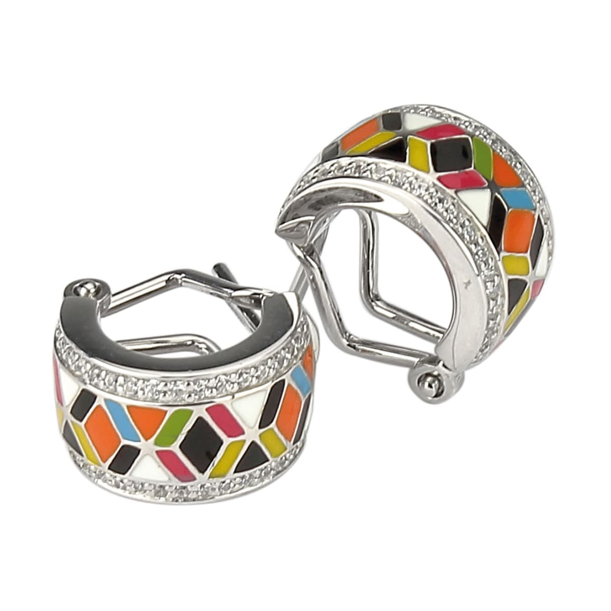 Les prix sont variables suivant le poids, la taille et le cours des matières premières.Boucles d’oreilles Femme Argent aux motifs multicolore, émaux et oxydes de zirconium