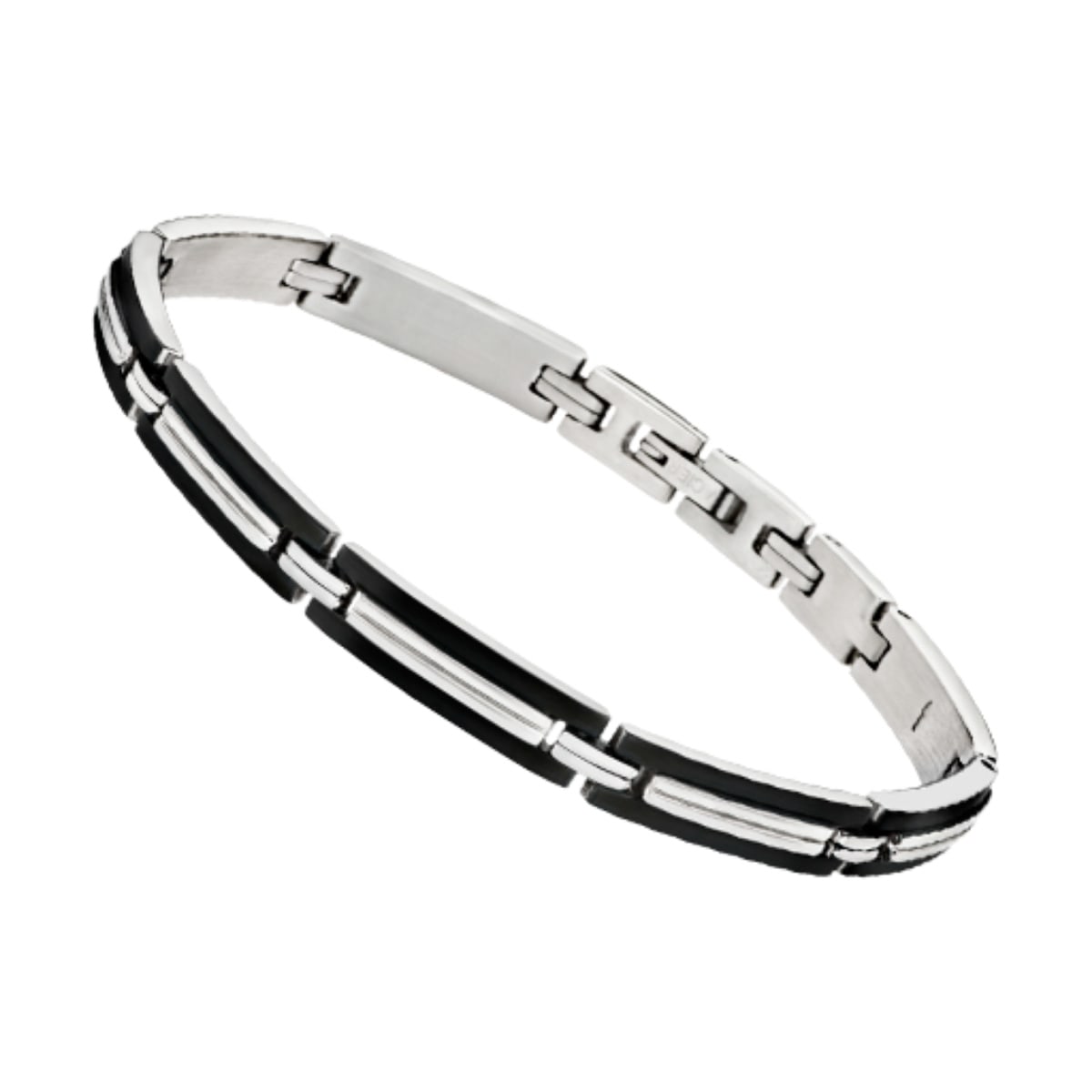 Bracelet en acier et résine noire de 21,5cm. Longueur réglable