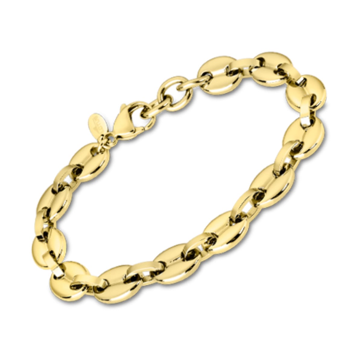 Les prix sont variables suivant le poids, la taille et le cours des matières premières.Bracelet maille grain de café LOTUS STYLE en acier doré. Taille unique
