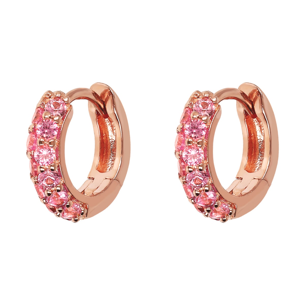 Boucles d'oreilles créoles Bronzallure en alliage Golden Rosé, plaqué or rose 18 carats, ornées d'un pavé de zircons cubiques, qualité lumineuse. La boucle d'oreille a une fermeture à baïonnette.