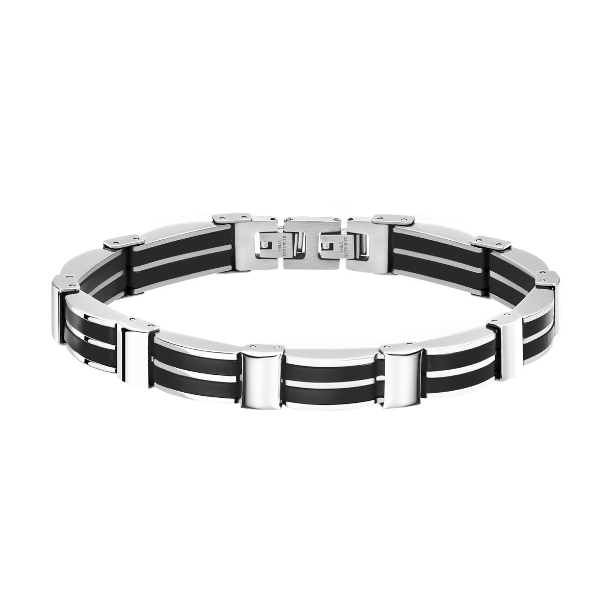 Bracelet articulé LOTUS STYLE pour homme en acier aux motifs noirs