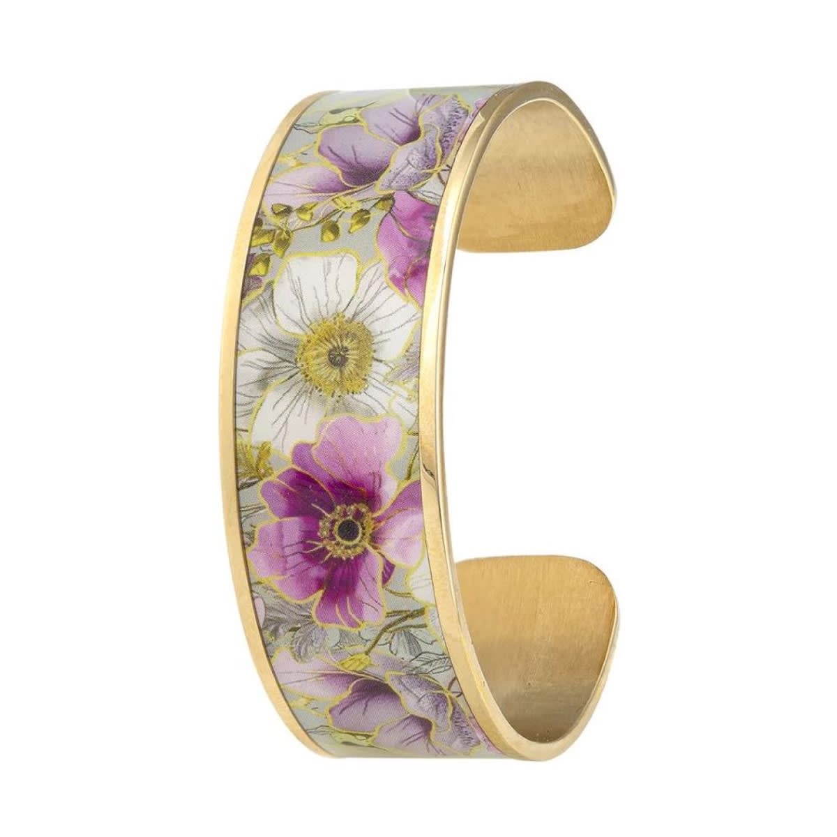 Toute nouvelle Manchette Louise's Garden Magnolia en acier doré et imprimé verni.