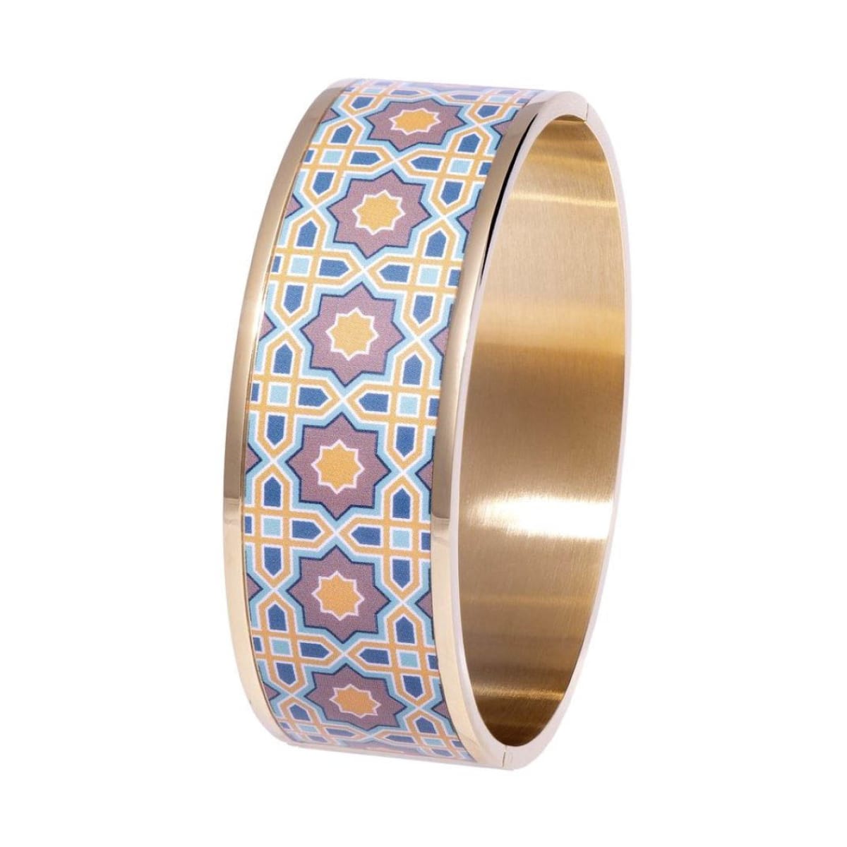 Manchette fernée 22mm en acier doré, à motifs géométriques inspirés de l'Edelweiss et aux couleurs chaleureuses