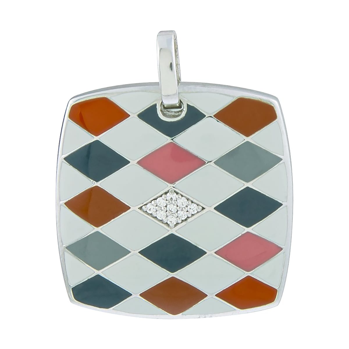 Pendentif en argent, à motifs de losanges en laques aux couleurs d’automne et oxydes de zirconium.